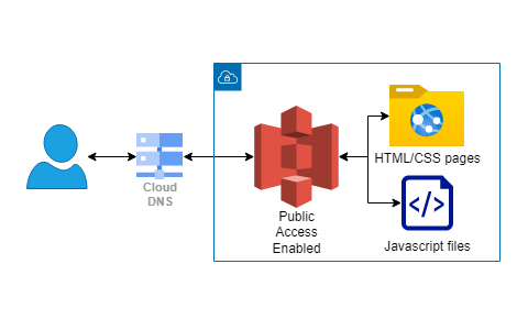 Here I am using the static website hosting option for Simple Storage Service (S3). I already had a domain registered with Google and added a permanent forwarding record to the URL generated for the S3 bucket. Inside of the bucket I have the HTML, CSS, JS, and Image files shows on this page.